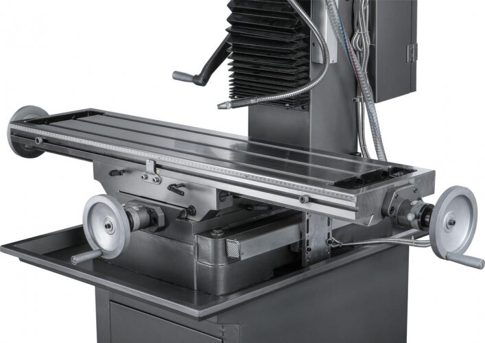 Модель JMD-50LPFD оснащена рабочим столом размером 1000 x 240мм, который перемещается по направляющим типа ласточкин хвост и имеет возможность перемещения по осям X, Y на величину 760мм и 190 мм соответственно. На столе имеется три Т-образных паза шириной 14 мм для закрепления деталей прихватами или установки тисков и других приспособлений. Опционально станок может быть дооснащен устройством автоматической подачи, которое устанавливается с левой стороны рабочего стола и позволяет осуществлять подачу по продольной оси в автоматическом режиме, улучшая качество получаемой поверхности и увеличивая производительность изготовления деталей. Также устройство имеет функцию ускоренного перемещения рабочего стола для сокращения времени подвода инструмента к детали и его отведения, для удобной установки/снятия обрабатываемой детали.