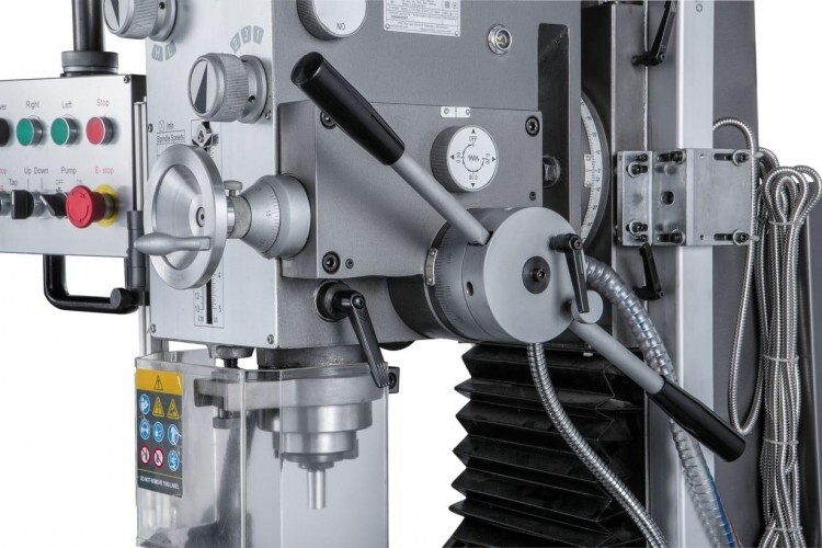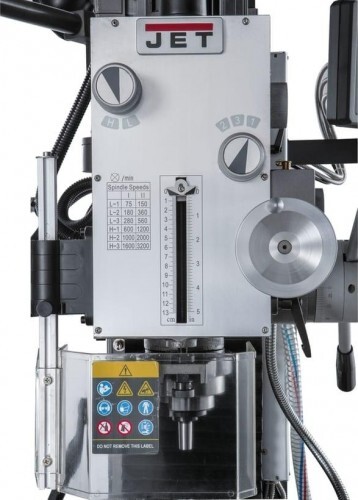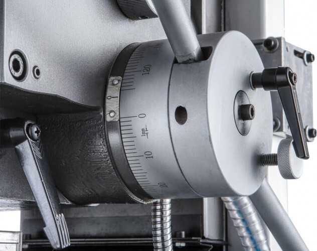Тяжелое основание и мощная вертикальная стойка, отлиты из серого чугуна, тем самым обеспечивая оборудованию необходимую устойчивость к вибрации. Станок оснащен мощным асинхронным двигателем 1,5 кВт, и имеет коробку переключения скоростей вращения шпинделя. В зависимости от обрабатываемого материала и необходимых режимов обработки, можно выбрать любую из 12 скоростей вращения шпинделя в 2-х диапазонах от 75 до 1600 об/мин и от 150 до 3200 об/мин. Для расширения диапазона обрабатываемых деталей фрезерная голова имеет возможность наклона вправо/влево на 90 градусов.