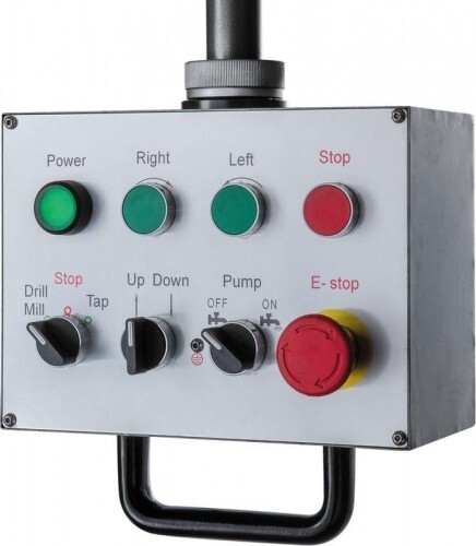 JMD-50LPFD предназначен для выполнения следующих операций: фрезерования, сверления, рассверливания, зенкования, зенкерования, развертывания и нарезания резьбы. Он оснащен шпинделем с конусом ISO30 и имеет возможность сверления отверстий до диаметра 32мм по стали и до 45мм по чугуну. Наличие реверсивного вращения электродвигателя, обеспечивает вращение шпинделя в обе стороны и позволяет осуществлять технологические операции по нарезанию резьбы.