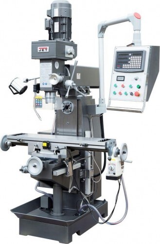 На станке JMD-939GHV DRO можно производить сверление отверстий до диаметра 30 мм и фрезеровать концевыми фрезами до диаметра 20 мм. На станке установлены вертикальный и горизонтальный шпиндели со скоростями вращения 100-2000 / 60-1350 об/мин соответственно. Расстояния между вертикальным шпинделем и столом от 70 до 370 мм, вертикальным шпинделем и поверхностью колонны от 250 до 650 мм; горизонтальный шпиндель-стол – от 20 до 320мм. Выбор скоростей вертикального шпинделя осуществляется с помощью бесступенчатой регулировки частоты вращения шпинделя с ее индикацией на пульте управления. Скорость вращения горизонтального шпинделя изменяется посредством клиноременных передач.