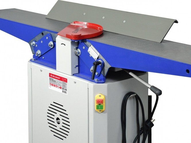 Как и у всех станков серии BJM, фуговальные столы выполнены из листовой шлифованной стали толщиной 5 мм. Их общий размер 1566×226 мм, что хорошо для обработки массивных заготовок.