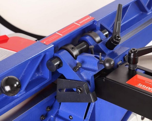 Рабочий стол и параллельный упор выполнены из чугуна. Для безопасной работы станок оборудован литым защитным кожухом ножевого вала. Также в комплекте есть специальные упоры для подачи заготовки.