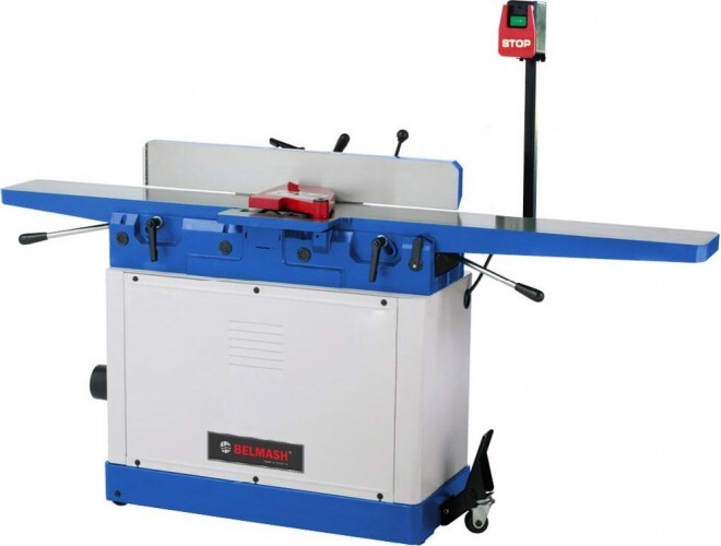 Станок предназначен для обработки древесины с целью придания ей необходимых размеров и форм. На станке можно выполнять фугование поверхностей. Имеет средние размеры, максимальная ширина обрабатываемой заготовки составляет 203 мм. Все основные детали отлиты из чугуна, рабочие поверхности фрезерованы. Глубина регулировки подающего стола до 16 мм. Длина загрузочного/ приемного столов - 1105/897. Удлененный стол нужен для обеспечения прямоленейности. Даже довольно габаритная заготовка , уложенная на него, будут иметь надежную опору, оператору остается только перемещать ее в горизонтальной плоскости и немного прижимать к поверхности стола. Имеет подкатное приспособление. Возможна замена ножевого вала на вал Helical или Spiral.