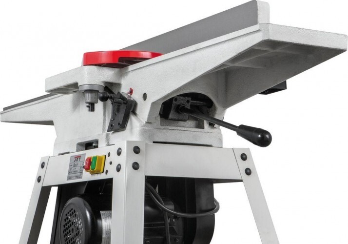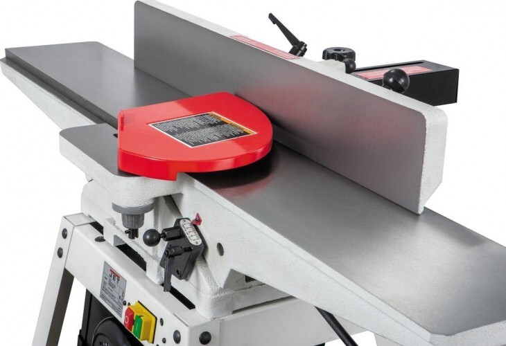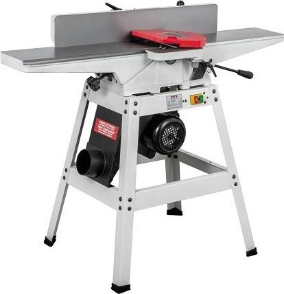 JJ-6HH OS — фуговальный станок для любительского применения с длинными чугунными столами и сегментированным вылом helical. Имеет классический дизайн с регулировкой высоты столов по наклонным направляющим. Базируется на открытой подставке, в пространстве которой расположен асинхронный однофазный двигатель. Привод ножевого барабана одним клиновым ремнем. Регулируемый фуговальный упор и его кронштейн сделаны из массивных чугунных отливок. Сдвижной защитный экран алюминиевый. Удаление стружки производится через 100-миллиметровый патрубок и кожух, расположенные снизу станка.