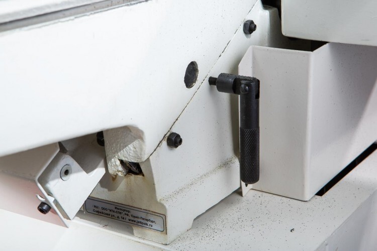 Конструктивно он состоит из двух частей. В нижней, играющей роль тумбы-подставки, располагается однофазный асинхронный («индукционный») мотор мощностью немного более киловатта и кожух сбора стружки со 100-миллиметровым патрубком для подключения к вытяжной установке. Верхняя часть состоит из чугунного основания, где размещен строгальный вал, и чугунных же рабочих столов с соответствующим оснащением, состоящим из защитного кожуха и упора заготовки. Оба стола регулируются по высоте при помощи винтовых механизмов, приводимых в действие ручками-маховиками. Перемещением подающего (переднего) стола регулируют глубину строгания, для чего есть соответствующая разметка; принимающий (задний) смещают только при наладочных операциях во время обслуживания станка.