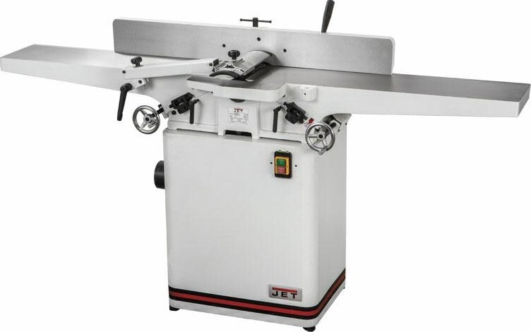JJ-8HH-M — фуговальный станок с длинными чугунными столами и шириной строгания 200 мм, штатно оборудованный ножевым валом helical.