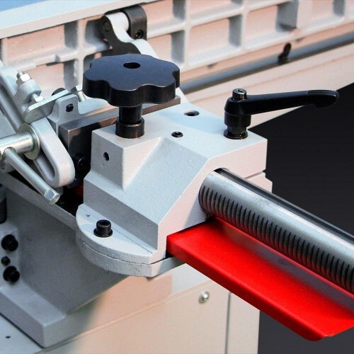 Установленный по центру большой чугунный параллельный упор, с возможностью наклона от -45° до + 45°.