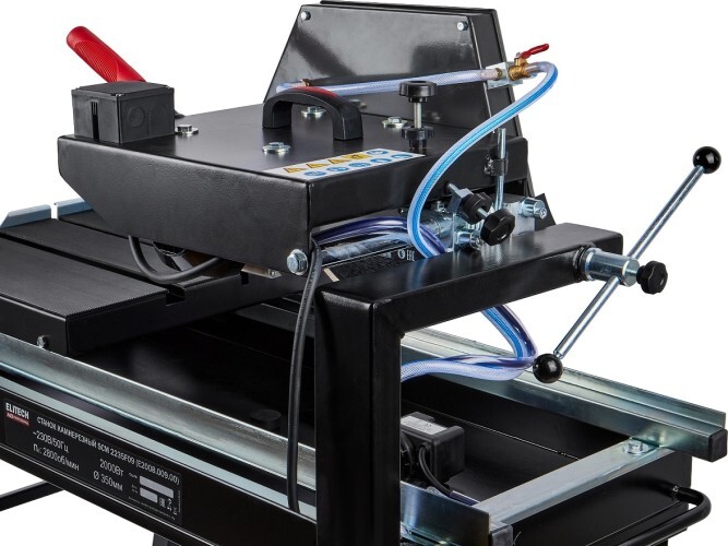 Станок камнерезный мощностью 2000 Вт предназначен для резки отрезным алмазным кругом диаметром 350 мм керамической плитки и камня на глубину до 90 мм. На станке можно выполнять прямые, угловые или комбинированные резы с большой точностью. Станок работает от однофазной сети переменного тока напряжением 230 В частотой 50 Гц.