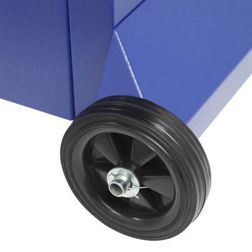 Несмотря на солидный вес 88 кг, станок можно перемещать благодаря передвижной тумбе с колесами. Опорные ножки обеспечивают дополнительную устойчивость во время работы.
