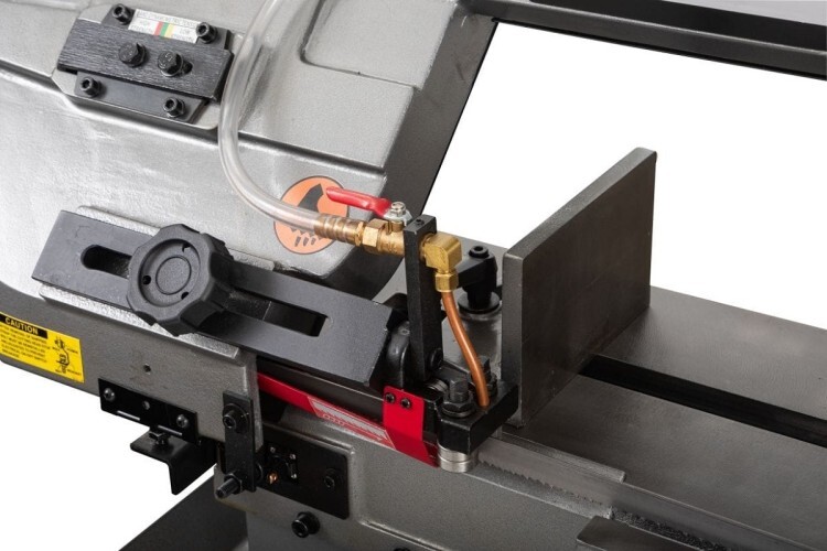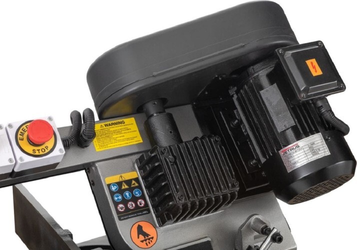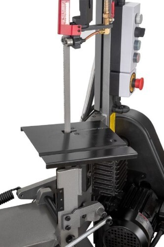 Модель оборудована кнопкой аварийной остановки двигателя, имеет тензометр, с помощью которого можно регулировать силу натяжения ленточной пилы.
