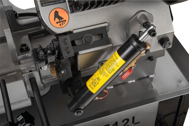 Станок ленточнопильный JET HVBS-712L 230 B - является представителем линейки моделей американского типа, с поворотными губками тисков. Станок используется для работы как в небольших мастерских, так и на производстве с подключением к сети 230В. Конструкция ленточнопильного станка позволяет осуществлять распил круглых металлических заготовок под прямым углом, максимальный диаметр которых составляет 178 мм, под углом в 45° - 127 мм. Смена позиции заготовок для определения угла распила, осуществляется путем переустановки губок механических тисков в необходимое положение. Угол распила определяется в соответствии с делениями шкалы.