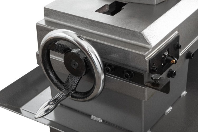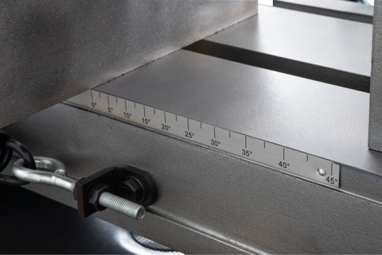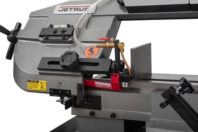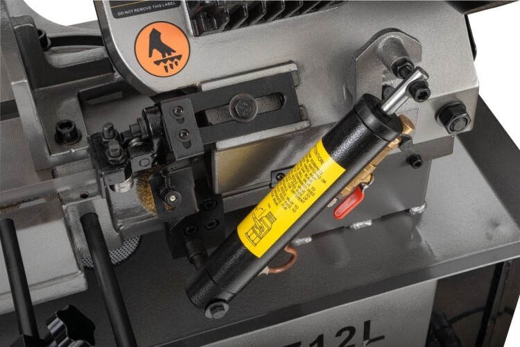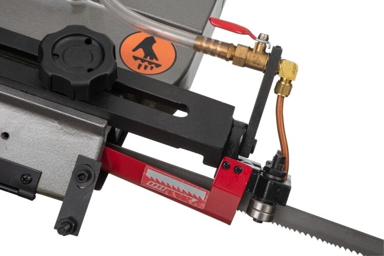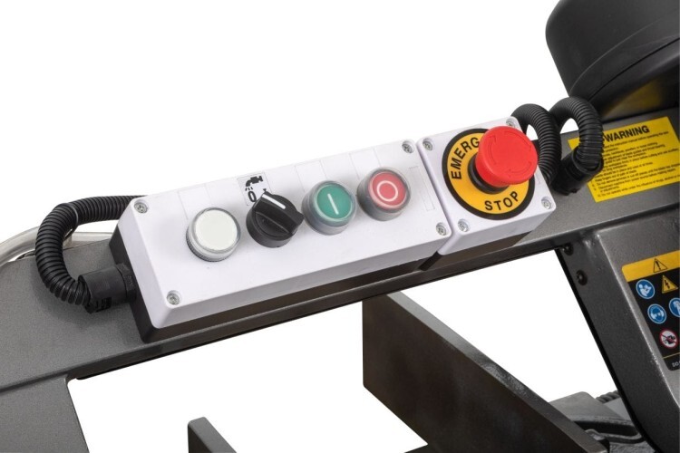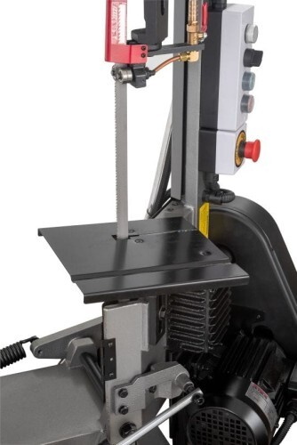Модель оборудована кнопкой аварийной остановки двигателя, имеет тензометр, с помощью которого можно регулировать силу натяжения ленточной пилы.