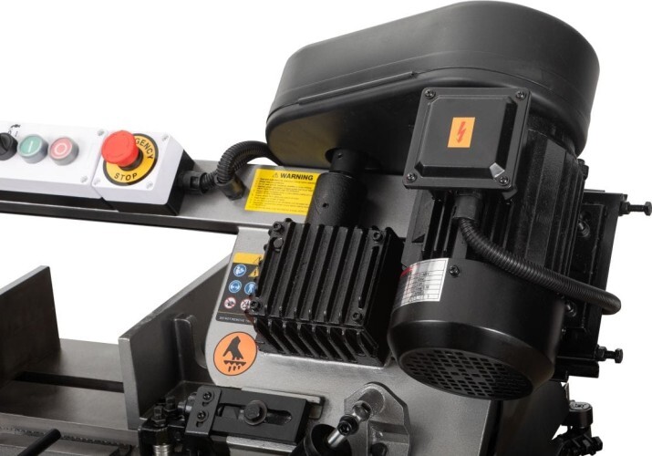 Ленточнопильный станок оснащен экономичным асинхронным двигателем, мощностью 0,75 кВт, с электропитанием от промышленной сети в 400В.