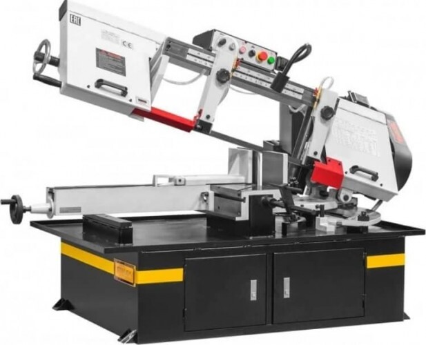 В рабочей зоне резания полотно точно ведется двумя направляющими головками. Станок имеет неподвижные тиски и поворотный механизм рамы, для пиления под углом необходимо изменить положение рамы относительно неподвижных тисков. Высота полотна 27мм позволяет пилить c высокой точностью и параллельностью полые и профильные заготовки под различными углами, в том числе и сплошные заготовки.