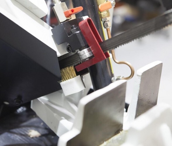 Используя данную модель имеющую быстрорегулируемые тиски для резки под углом, поворачивается рама, а не заготовка. Тиски с системой быстрого отвода ускоряют процесс смены заготовки (ускоренный отвод подвижной губки происходит без вращения маховика). Зажим заготовки осуществляется тисками вручную, подача заготовки - также вручную. Наличие система СОЖ в стандартной комплектации – позволяет добиться высокой производительности.