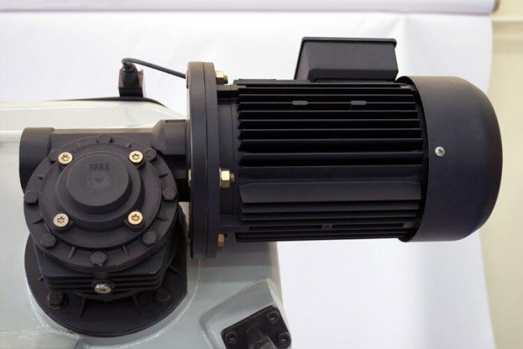 Пила опускается под собственным весом, станок оборудован дросселируемым гидравлическим цилиндром, который позволяет автоматически подстраивать скорость опускания пильной рамы в зависимости от профиля заготовки, что обеспечивает оптимальные режимы, зажим заготовки осуществляется тисками вручную, подача заготовки - также вручную.
