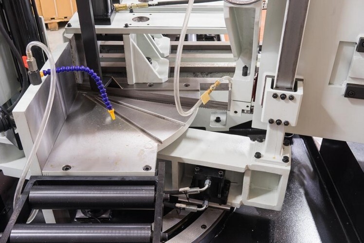 Автоматический ленточнопильный станок, предназначен для пиления труб и сплошных заготовок, максимальным диаметром круга 350 мм и прямоугольной заготовки 500x350 мм под углом 90°, а также с возможностью поворота рамы для пиления заготовок под углом 45°.
