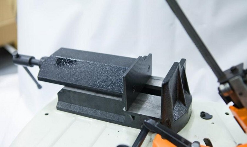 Режущий инструмент – бесконечная сварная ленточная пила. Полотно натягивается с помощью натяжного шкива. Натяжной шкив приводится в движение приводным шкивом, который в свою очередь, приводится через редуктор. Зажим заготовки осуществляется тисками вручную, подача заготовки - также вручную.