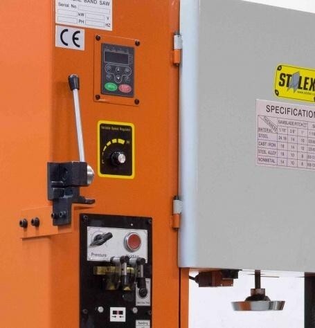 STALEX VS – 400 - ленточнопильный станок вертикального типа. Универсален: работает с металлическими и неметаллическими заготовками, отличается способностью продольного распила. Кроме того, позволяет понижать ширину пропила, существенно снижая потери материала. Данный станок обеспечит высокую точность операций, есть возможность ручной, наружной, криволинейной и других типов резки. Конструкция идеально продумана, особое внимание уделено безопасности оператора. Рабочий стол может наклоняться на 45 градусов влево и на 15 – вправо. В комплектацию входит полный ремкомплект для полотна.