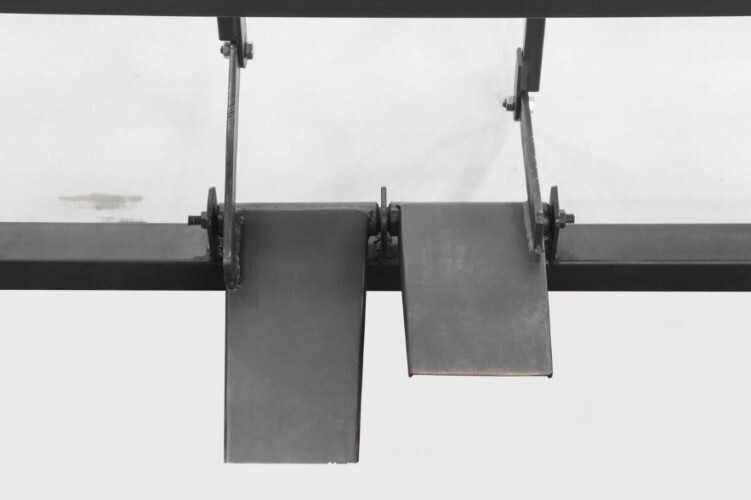 Жёсткая конструкция ножной стойки, с параллельным вертикальным расположением ножек станка исключающих дальнейшее провисание балок по краям станка (как в случаях расположения ножек станка под углом/в центр на длинах 2500мм/3000мм/3500мм).