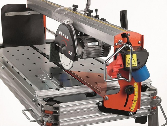 Плиткорезные станки серии CLASS предназначены для резки мрамора, керамогранита, односторонней и двухсторонней керамической плитки. Могут резать материал под углом от 90 до 45 градусов. Небольшие габариты и малый вес делают их исключительно удобными для работы в помещениях при отделочных и прочих работах. Диск приводится во вращение электродвигателем с защитой от перегрева. Система охлаждения с водяным насосом S0 продлевает ресурс режущего диска. Модель также оснащена лазерным указателем для наиболее точного реза и транспортировочными колесами.