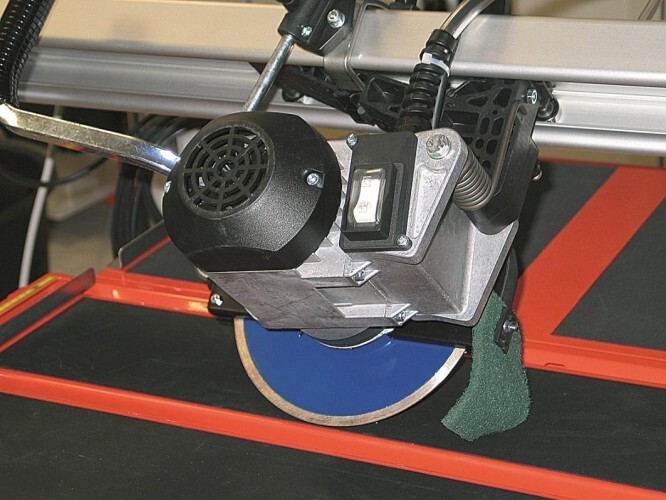 Рез производится путем ручного перемещения режущей головки вдоль направляющей при неподвижном рабочем столе