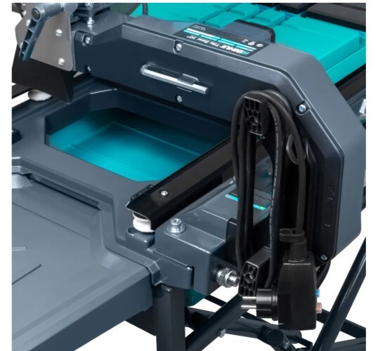 Благодаря складной конструкции и не большим размерам станок не доставляет сложностей в транспортировке и хранении. Из транспортного состояния в рабочее собирается за 5–7 минут. Также предусмотрены колесики для удобного передвижения с места на место. Электроплиткорезы требуют минимального ухода, который осуществляется ежедневно очень легко благодаря съёмным рабочим столам и поддону для воды.