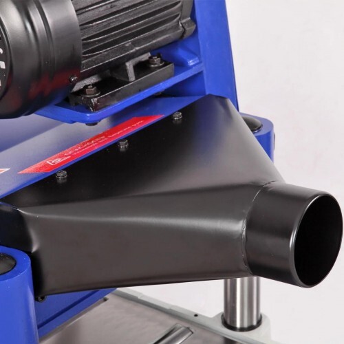 Осуществлена система перемещения станка. Патрубок для отвода стружки имеет диаметр 100 мм. Со стороны подачи установлен ряд защитных упоров, предотвращающих отдачу заготовки во время процесса строгания.