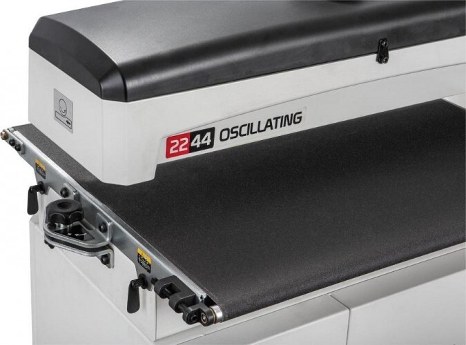 JWDS-2244OSC-M барабанный шлифовальный станок с осцилляцией. Модель выполнена в новом дизайнерском стиле и оборудована «умной» системой управления скоростью подачи заготовки SandSmart.