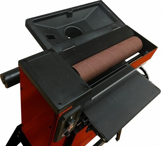 В отличие от других барабанно-шлифовальных станков открытого типа, стол перемещается вверх и вниз вместо барабана, что означает, что опора барабана намного более жесткая во время шлифования, что обеспечивает более чистое шлифование.