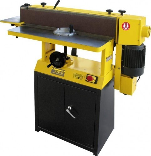 Шлифовальный станок «Корвет 58» предназначен для шлифования заготовок из дерева и деревосодержащих материалов. В этом станке к круговому движению шлифовальной ленты добавляется осциллирующее движение, что повышает качество и чистоту обработки поверхности заготовки. Станок поставляется в комплекте с тумбой. Предусмотрен наклон ленточного узла, что позволяет ленте двигаться и в горизонтальной, и в вертикальной плоскости. Имеется патрубок для подсоединения пылесоса. Рабочий стол отлит из чугуна и регулируется по высоте. Имеется дополнительный рабочий стол, который устанавливается с торца ленточного узла для шлифования закругленных поверхностей.