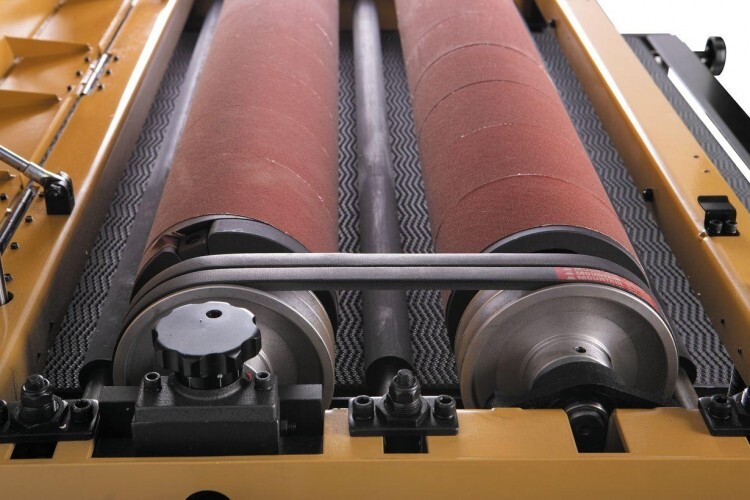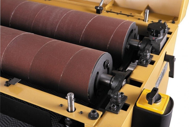 Конструкция с двумя валами позволяет использовать абразивы с разной зернистостью, то есть за один проход производить грубую и финишную шлифовку. Для достижения наилучшего результата предусмотрена точная регулировка положения выходного вала относительно приёмного, высоту которого подбирают в зависимости от зернистости абразива. Регулировка по высоте шлифовки производится независимо за счет опускания транспортёрного стола. Он размещен на четырёх опорах и регулируется с точностью до 0,2 мм по всей ширине. На практике, разброс толщины после шлифовки на хорошо настроенном DDS-237 значительно меньше. При такой точности станки способны снимать за один проход до 1,5 мм по всей ширине, необходимо лишь правильно подобрать абразив и скорость подачи (2 или 3 м/мин).