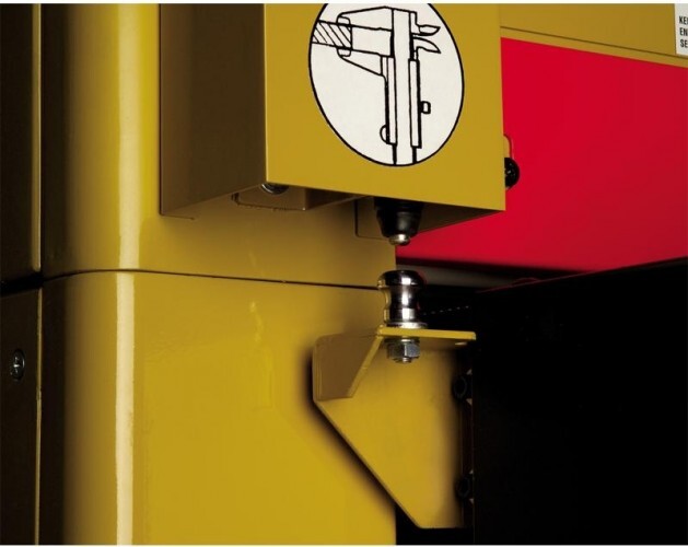При замене изношенной ленты производят ее центрирование. Процедура проста и выполняется одной регулировочной рукояткой. Натяжение производится «пневматикой» автоматически и контролируется датчиком: если оно будет недостаточным, станок не включится или остановится.