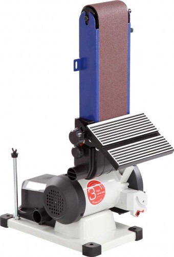 Рабочий стол съемный, в зависимости от потребности его можно переставить на ленточный шлифовальный узел, установленный в вертикальном положении.