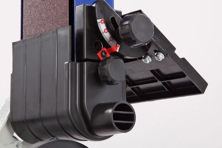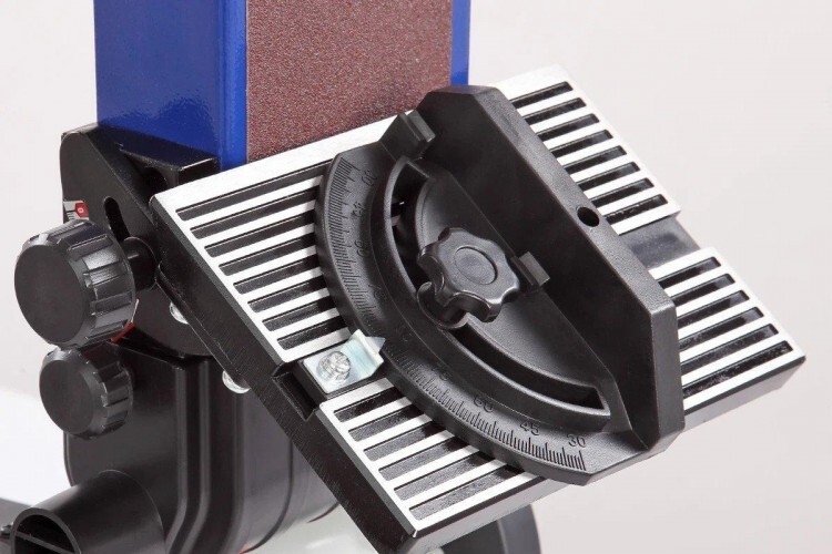Ленточный блок поворотный, в зависимости от задач можно установить угол наклона от 0 до 90 град. Для удобства имеется рычаг быстрого натяжения и ослабления шлифовальной ленты.