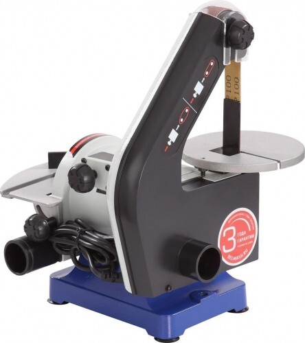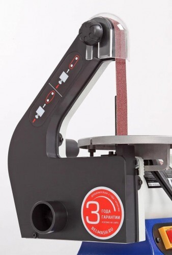 Ленточный шлифовальный узел имеет рабочий стол из алюминиевого литья, с регулировкой угла наклона.