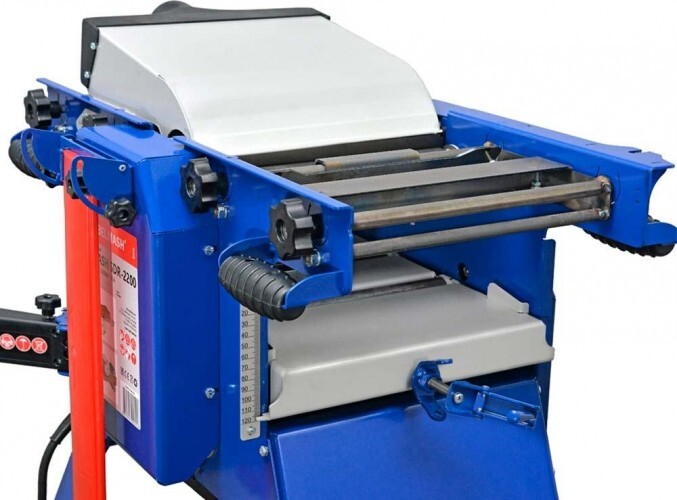 Надежный асинхронный двигатель мощностью 2,2 кВт позволяет строгальному валу достигать частоты вращения 7700 оборотов в минуту, что является оптимальным как для строгания, так и для рейсмусования.