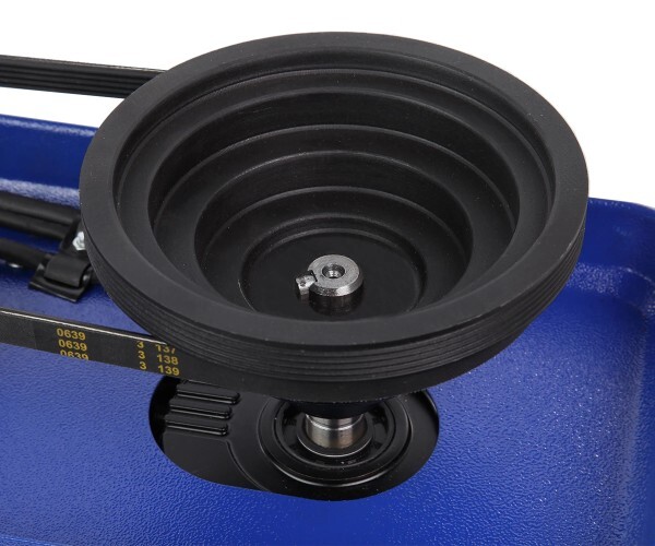 Станок способен сверлить отверстия с максимальным диаметром до 20 мм (в металле) и до 50 мм (в древесине). Патрон ключевой трехкулачковый, с возможностью установки инструмента с хвостовиком до 16 мм. Вращающий момент с вала двигателя на шпиндель передается с помощью клиноременной передачи. Скоростей у данной модели пять: 200, 580, 960, 1550 и 2400 об./мин. Изменить частоту вращения можно переброской ремня на нужную ступень шкивов.