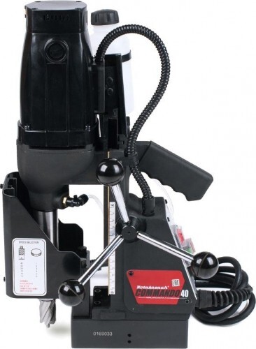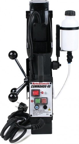 Магнитный электрический сверлильный станок Rotabroach COMMANDO 40 4284 - современная модель для получения отверстий в черных металлах. Установка оснащается магнитным основанием для надежного удержания на поверхности во время сверления. Сила магнита составляет 800 кг. Система СОЖ позволяет избежать перегрева во время работы. Небольшая и компактная конструкция агрегата позволяет выполнять работу в стесненных условиях. Оборудование широко применяется на производстве, в промышленности, строительстве и других сферах. Максимальная длина спиральных сверл - 55 мм.