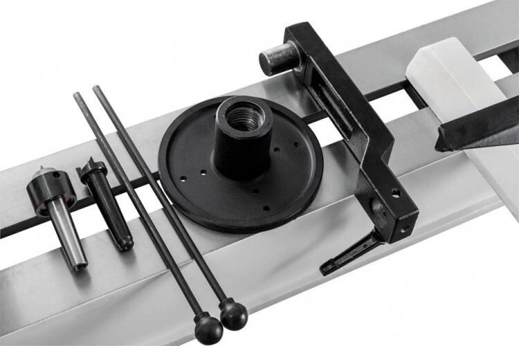 Полезная особенность станков — возможность поворота передней бабки вокруг вертикальной оси. Благодаря чему можно закреплять на планшайбе (входит в комплект) и обтачивать заготовки диаметром больше, чем размер над станиной. При этом ключевое значение приобретает конструкция подручника. Он имеет три степени свободы и собран из массивных литых деталей; все это позволяет пользоваться опорой и при точении сбоку станины. В некоторых случаях пригодится и возможность передвинуть переднюю бабку вдоль станины.