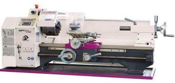 Настольный токарный станок. TU 2406V — с электронной регулировкой скорости. Маховики с ценой деления лимба 0,04/0,01 мм. Маховик перемещения задней бабки с ценой деления лимба 0,02 мм.