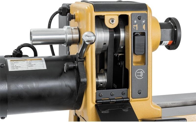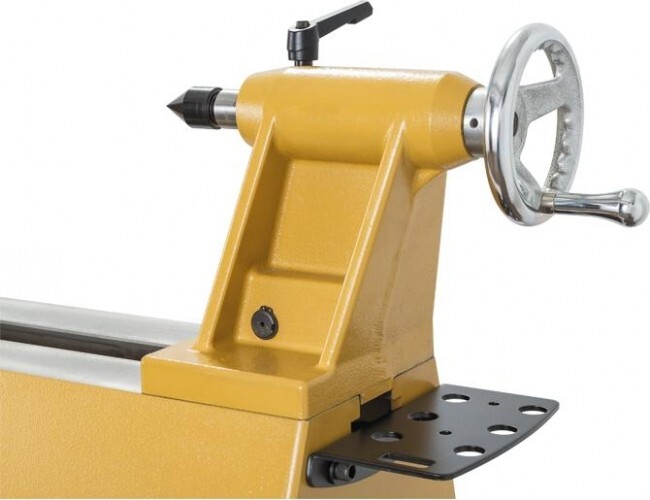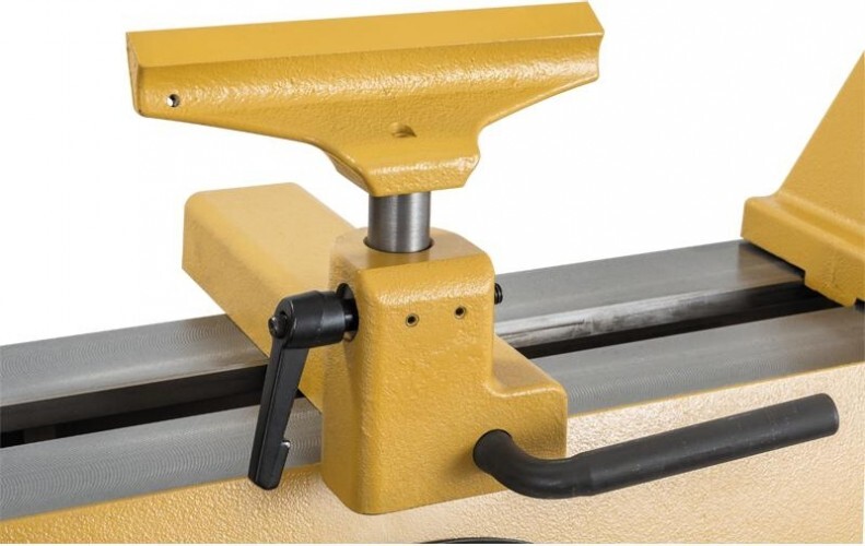 Передняя и задняя бабки имеют эксцентриковую фиксацию, они сдвижные и поворотные на угол 180°, что позволяет, в частности, обтачивать заготовки большого диаметра на выносной опоре. Она может быть напольной (в комплект не входит) или монтироваться на 13-дюймовом удлинении станины (докупается отдельно опция арт. 6294755), крепежные отверстия для него предусмотрены на разных уровнях.