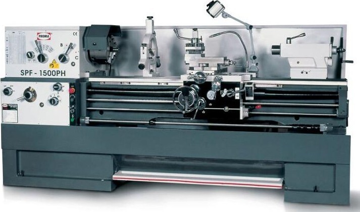 Универсальный токарный станок SPF-1500PH с УЦИ предназначен для обработки тел вращения путём снятия с них стружки при обточке. На станке можно выполнять различные виды токарной обработки: обтачивание цилиндрических, конических, фасонных поверхностей, подрезку торцов, отрезку, растачивание, а также сверление и развёртывание отверстий, нарезание резьбы и накатку рифлений, притирку и т.п. Модель оснащена ножным тормозом, лампой рабочего освещения и системой охлаждения СОЖ. Данный станок широко используется в условиях серийного и мелкосерийного производства, в ремонтных цехах, в слесарных и столярных мастерских, на складах и т.п.