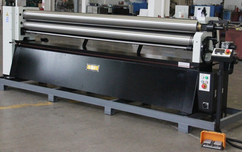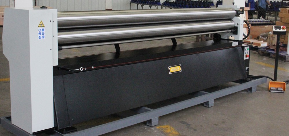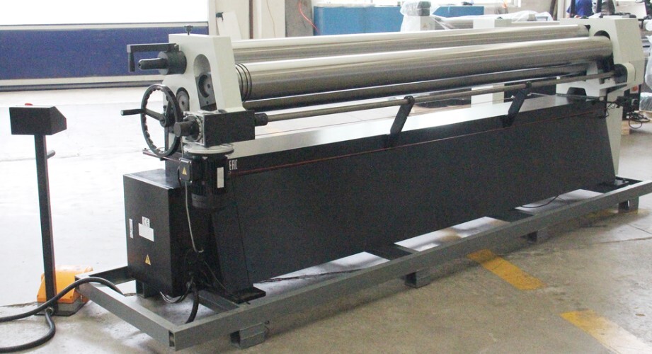 Вальцовочный станок предназначен для предания листу цилиндрической формы различного радиуса, данное оборудование широко применяется для изготовления комплектующих вентиляции, водосточного оборудования, в случаях производства цилиндрических и конических изделий, правке плоских заготовок, подгибке кромок. Выносная педаль дублируется пультом управления на станине станка. Цепная передача передаёт вращение с электродвигателя на валы. Верхний вал откидной, для легкого снятия готовых изделий. Откидной вал оснащен замком для предотвращения его самопроизвольного раскрытия в процессе работы.