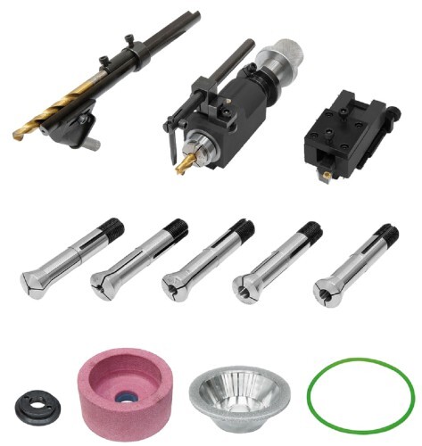 Специальные устройства для заточки фрез, сверл и токарных резцов в комплекте поставки.