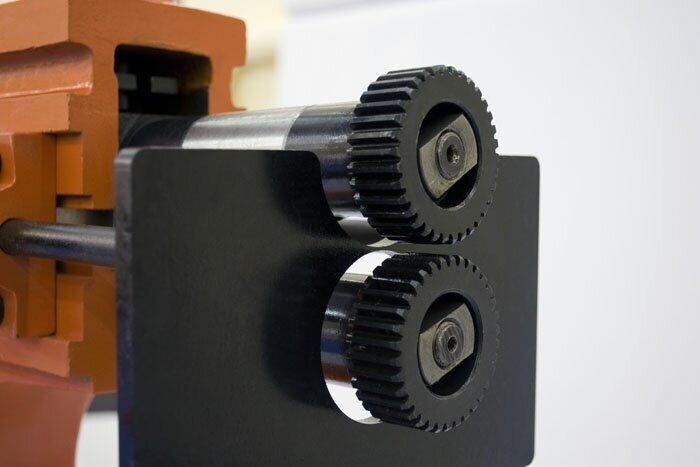 Принцип работы этой машины – это круговое вращение верхнего и нижнего регулируемого ролика с одинаковой скоростью, но в противоположном направлении.