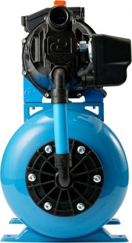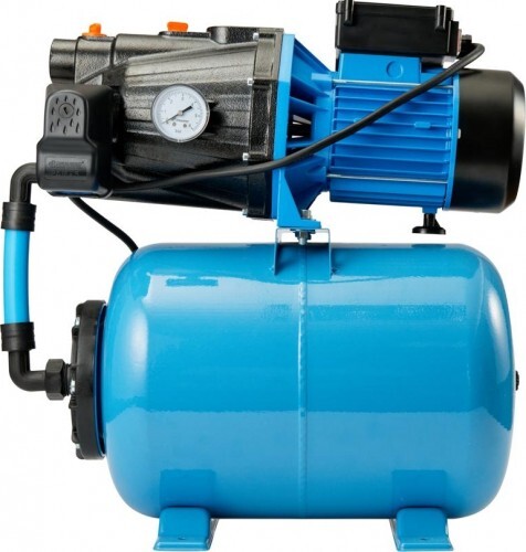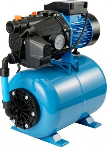 Насос-автомат с системой автоматического управления по давлению состоит из поверхностного насоса, горизонтального объемом 24 л. гидроаккумулятора, реле давления, манометра, соединительной арматуры и электрошнура с вилкой.