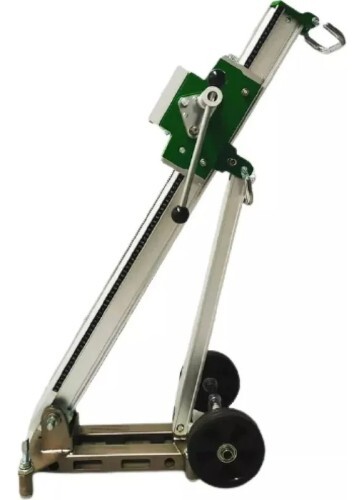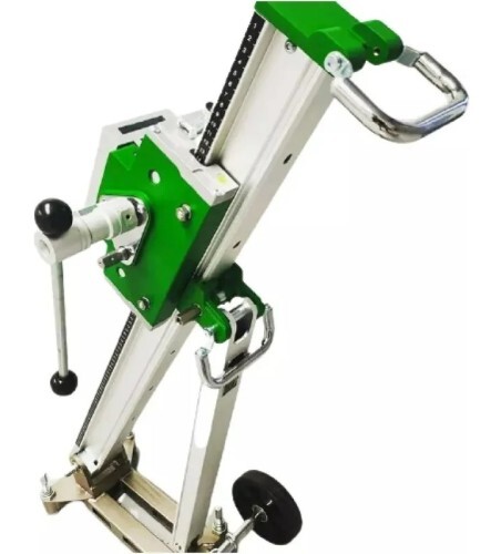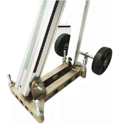Надежная станина установки алмазного бурения BYCON DSP-352 c прочным стальным основанием для анкерного крепления, транспортировочными колесами, быстросъемным креплением двигателя для сверления отверстий диаметром до 350 мм.