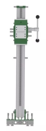 Надежная станина установки алмазного бурения BYCON DSP-500 c прочным стальным основанием для анкерного крепления, транспортировочными колесами, быстросъемным креплением двигателя для сверления отверстий диаметром до 500 мм.