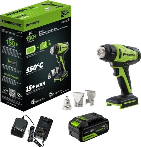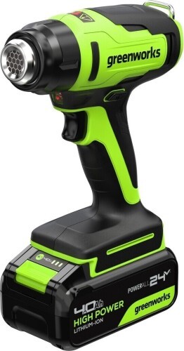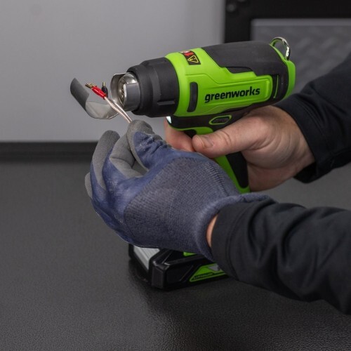 Аккумуляторный технический фен Greenworks G24HG поможет в работах с термоусадочными материалами, в установке или снятии тонировки, наклеек, в гибке полимерных труб, в нанесении полимерных мебельных кромок и даже в разморозке труб.